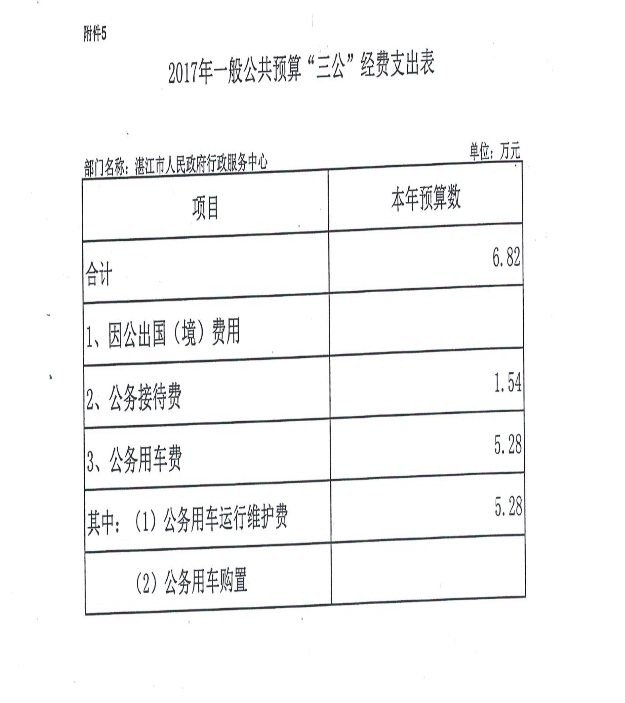 2017年“三公经费”财政拨款预算支出共6.82万元,具体情况如下: