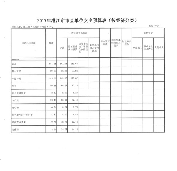 双赢彩票(中国)开奖记录官网 行政服务中心2017年预算公开(含部门预算情况说明及相关预算表格)