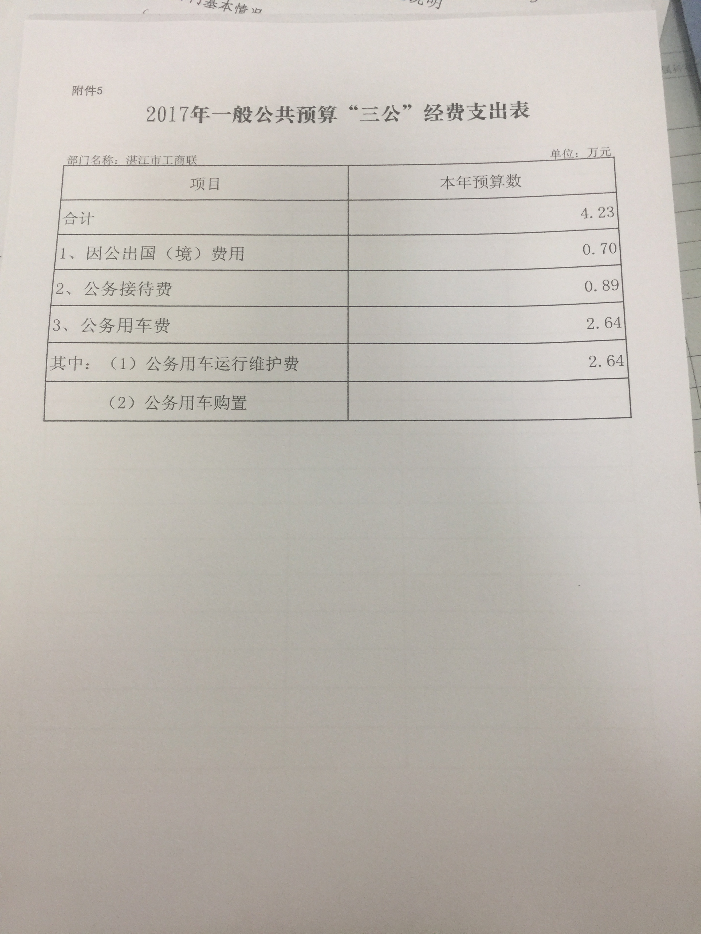 “三公”经费包括因公出国(境)费、公务用车购置及运行维护费和公务接待费。2017年双赢彩票(中国)开奖记录官网 工商业联合会财政拨款预算“三公”经费支出合计4.23万元,与上年持平。其中:因公出国(境)费0.7万元,占16.55%;公务用车费共2.64万元,占62.41%,具体为公务用车购置费0元,公务用车运行维护费2.64万元;公务接待费0.89万元,占21.04%。