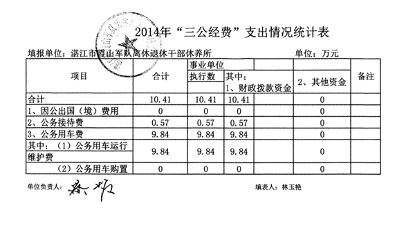 双赢彩票(中国)开奖记录官网 霞山区军队离休退休干部休养所2014年“三公”经费支出情况统计表