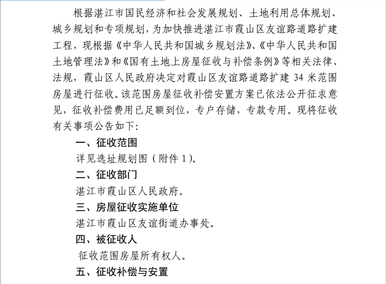 附件:附件2:霞山区友谊路道路扩建34米范围房屋征收补偿安置方案( 根据市政府办公室文件呈批表Z19155修改) 附件:附件1:选址规划图