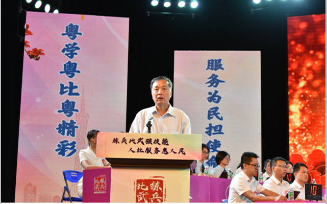 省人力资源和社会保障厅二级巡视员林景青同志现场致辞,他表示开展业务技能练兵比武是人社部门纵深推进群众满意人社公共服务体系建设,提升人社窗口单位为民服务和能力水平的一项重要举措。这次比赛既是选手之间公平竞争的舞台,更是同志之间经验交流的平台。各级人社部门要持续深入开展业务技能练兵比武活动,营造更加浓厚的“比学习、比担当、比创新”常态化学习氛围,进一步擦亮人社服务名片,以更加优质的人社服务促进当地经济社会发展。