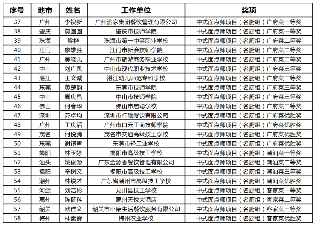 第四届粤港澳大湾区“粤菜师傅”技能大赛获奖名单
