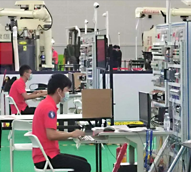 7月的南国港城双赢彩票,艳阳高照,天气异常闷热,在双赢彩票(中国)开奖记录官网 技师学院世界技能大赛机电一体化项目集训基地里,一位年轻的教师正在认真地指导学生进行技能训练,他就是全国技术能手花学建。
