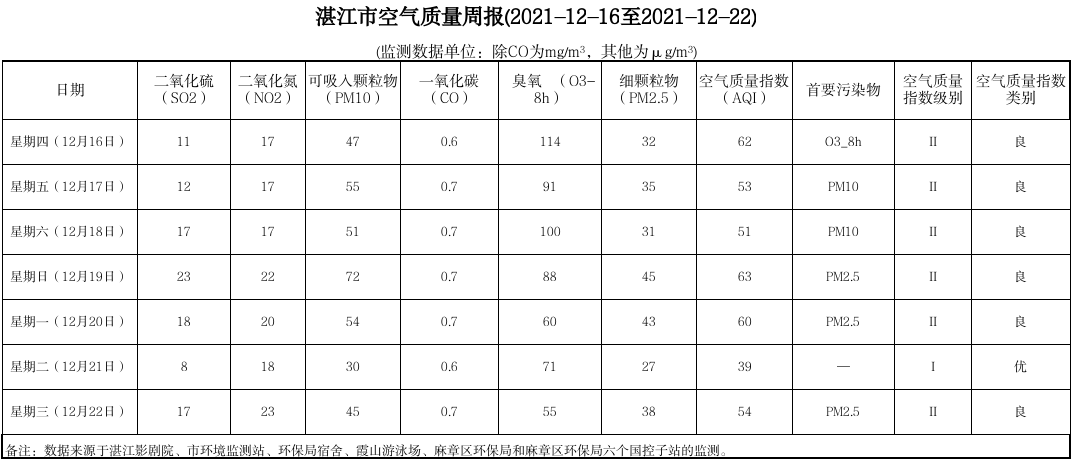 双赢彩票(中国)开奖记录官网 空气质量周报(2021-12-16至2021-12-22)