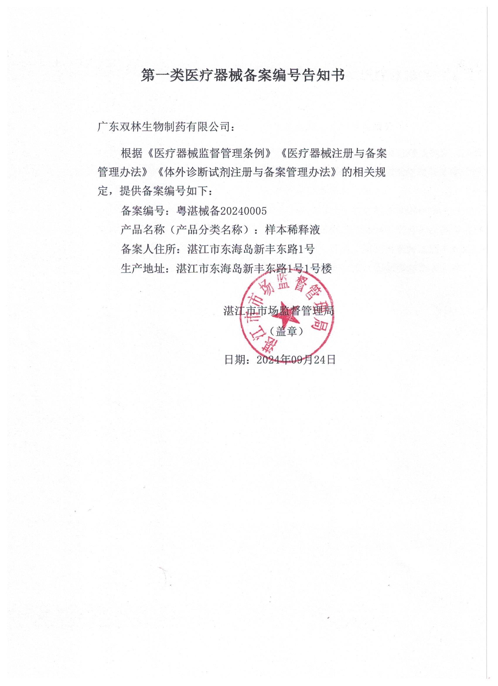 第一类医疗器械产品备案公示(20240007).xls 第一类医疗器械备案编号告知书.jpg 第一类体外诊断试剂备案信息表.jpg