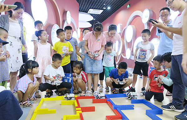 科普课堂上讲解了垃圾分类的意义和标准,孩子们通过分组进行机器人操控和垃圾分类比赛,寓教于乐的形式让大家轻松学习了科普知识。