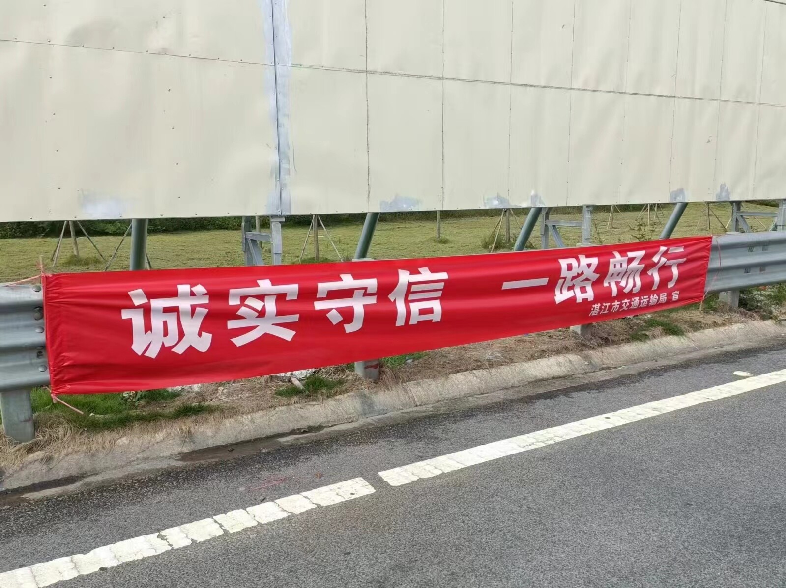 为贯彻落实省厅“信用交通宣传月”活动方案,我局开展了多形态阵地诚信宣传。9月14日我局执法四科在高速公路服务区通过悬挂宣传标语、向过往司机派发有关信用读本宣传诚信知识,让人人懂法、学法、依法诚信经营,在运输服务中营造良好的氛围。