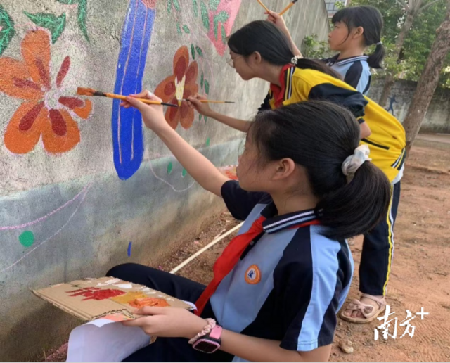 遂溪县还开展“我为家乡添色彩”墙绘设计作品展活动。学生在老师指导下挥动画笔,在墙体和纸上挥洒着创意,一点一滴地完成了一幅幅充满生机和活力的手绘作品,使校园瞬间灵动起来。此项活动不仅给美丽乡村建设和校园增添了别样的色彩,还传播了美好家园、共建共享的理念,积极打造“美好家园,人人有责”的乡村氛围。
