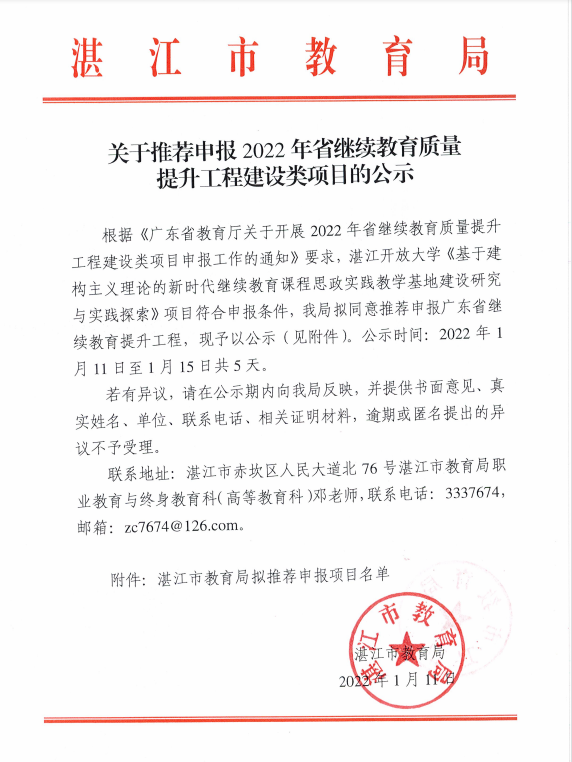 关于推荐申报2022年省继续教育质量提升工程建设类项目的公示