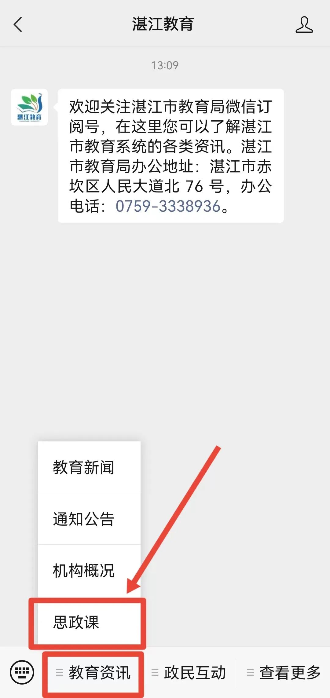 2.关注“双赢彩票教育”微信公众号,点击菜单栏“教育资讯”——“思政课”可随时收看回放。