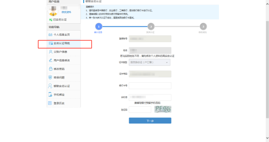 第三步:注册成功后,提示须进行个人实名认证,实名认证时需用可以网上支付的银联卡认证(不是所有银联卡都能验证)。实名认证成功后关闭浏览器,重新打开省人社的网站,登录后再申请待遇,否则系统会反复提示申请人实名认证。
