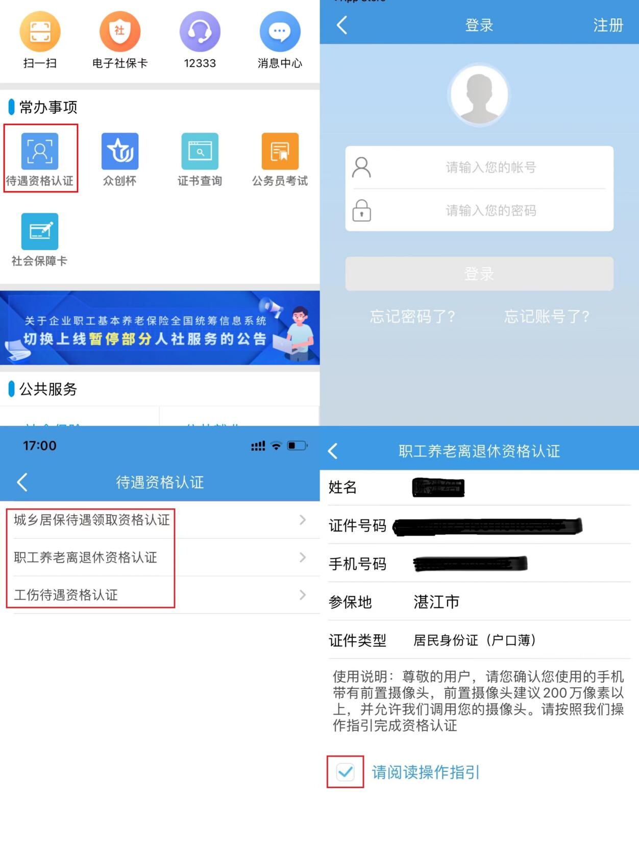 下载“广东人社“APP→待遇资格认证→职工养老离退休资格认证或城乡居保待遇领取资格认证→录入退休人员信息→资格认证