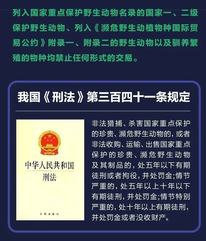 在全国齐心协力、共同抗击疫情的关键时刻,今年的世界野生动植物日有着特别的意义。日前,十三届全国人大常委会第十六次会议表决通过了《全国人民代表大会常务委员会关于全面禁止非法野生动物交易、革除滥食野生动物陋习、切实保障人民群众生命健康安全的决定》,确立了全面禁止食用野生动物的制度。野生动物和我们一样,是这个地球上的居民,它们同样会生、老、病、死,同样拥有生存与繁衍的权利。下面让我们一起来了解更多~