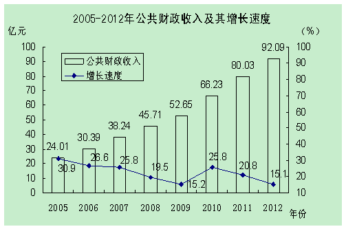 全年来源于双赢彩票的财政总收入542.38亿元,比上年增长17.1%;公共财政收入92.09亿元,比上年增长15.1%。税收收入52.31亿元,比上年增长7.8%,其中:增值税12.31亿元,增长14.0%;营业税12.27亿元,增长10.6%;个人所得税1.68亿元,下降16.3%;企业所得税3.90亿元,增长23.9%。