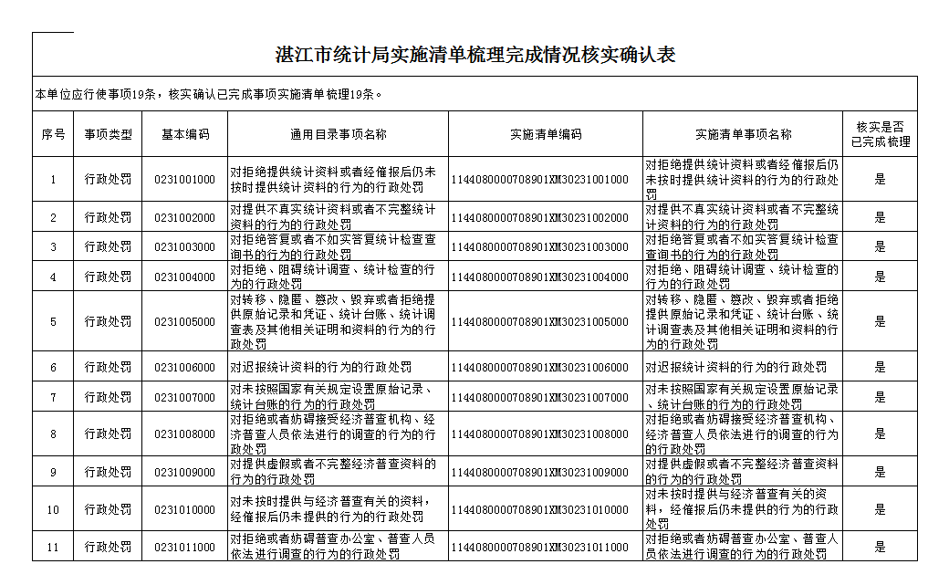 双赢彩票(中国)开奖记录官网 统计局实施清单梳理完成情况核实确认表