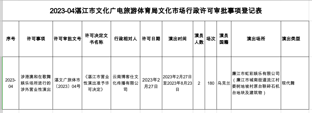 2023-04双赢彩票(中国)开奖记录官网 文化广电旅游体育局文化市场行政许可审批事项登记表