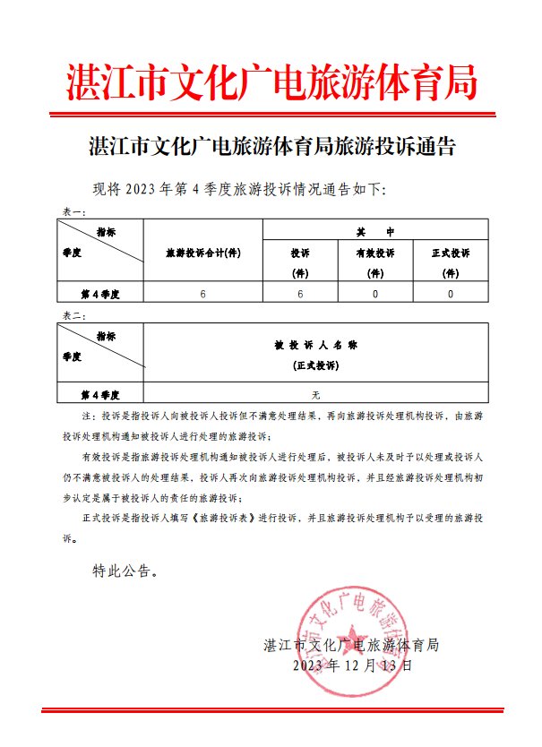 双赢彩票(中国)开奖记录官网 文化广电旅游体育局旅游投诉通告