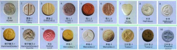 目前被我国禁毒委员会列为合成毒品的有:冰毒、摇头丸、氯胺酮(K粉)咖啡因、安纳加、LSD、安眠酮、丁丙诺啡、地西泮片、麦司卡林、迷幻蘑菇、有机溶剂和鼻吸剂等。