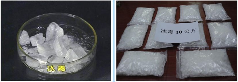 冰毒外观为纯白结晶体,晶莹剔透,具有强烈的中枢兴奋作用与致欣快作用,吸食后会大量消耗体力,降低免疫功能,严重损耗心脏、大脑组织甚至导致死亡。目前,冰毒已成为国际上危害最大的毒品之一。