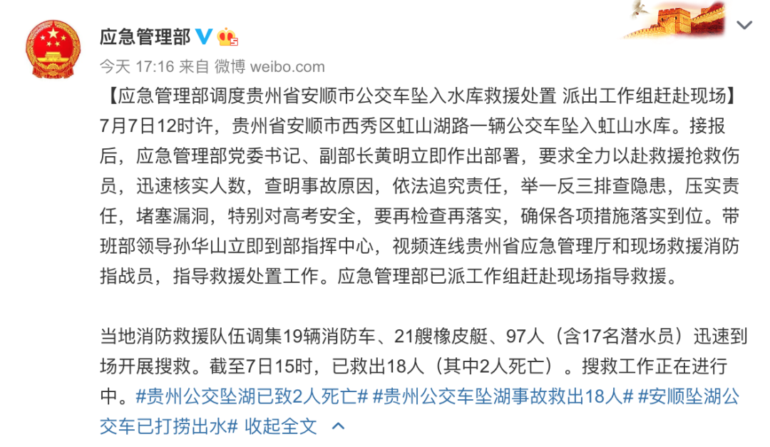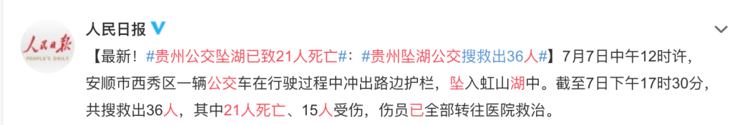 痛心!贵州安顺公交车坠湖已致21人死亡