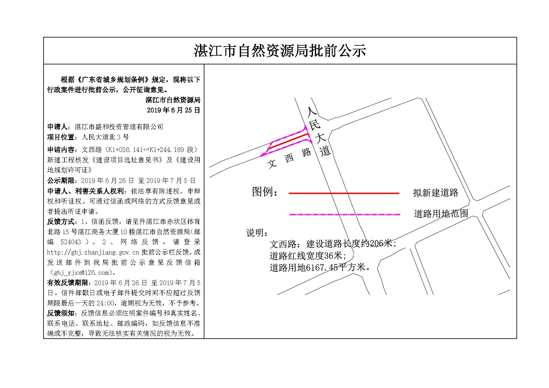 文西路(K1+038.141~K1+244.189段)新建工程核发《建设项目选址意见书》及《建设用地规划许可证》批前公示