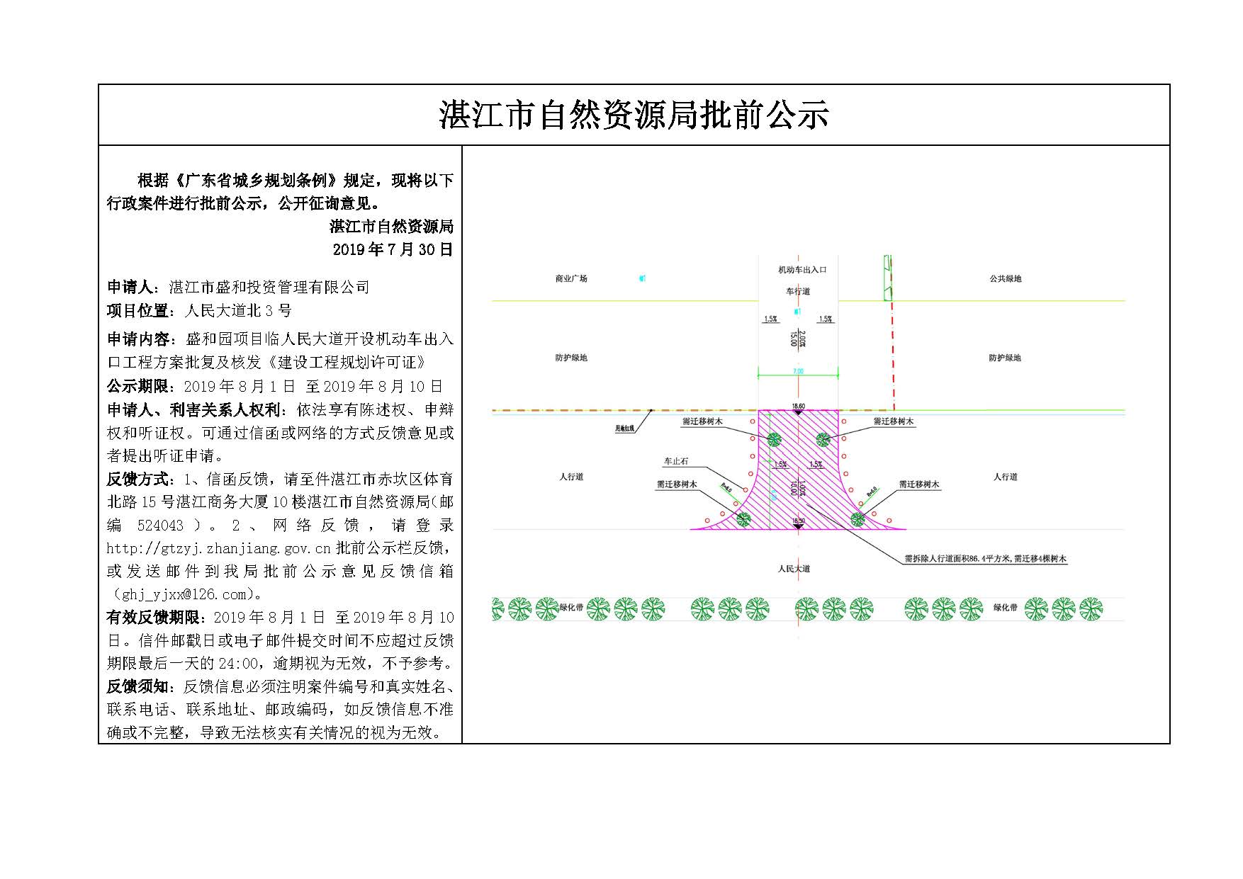 盛和园项目临人民大道开设机动车出入口工程方案批复及核发《建设工程规划许可证》批前公示