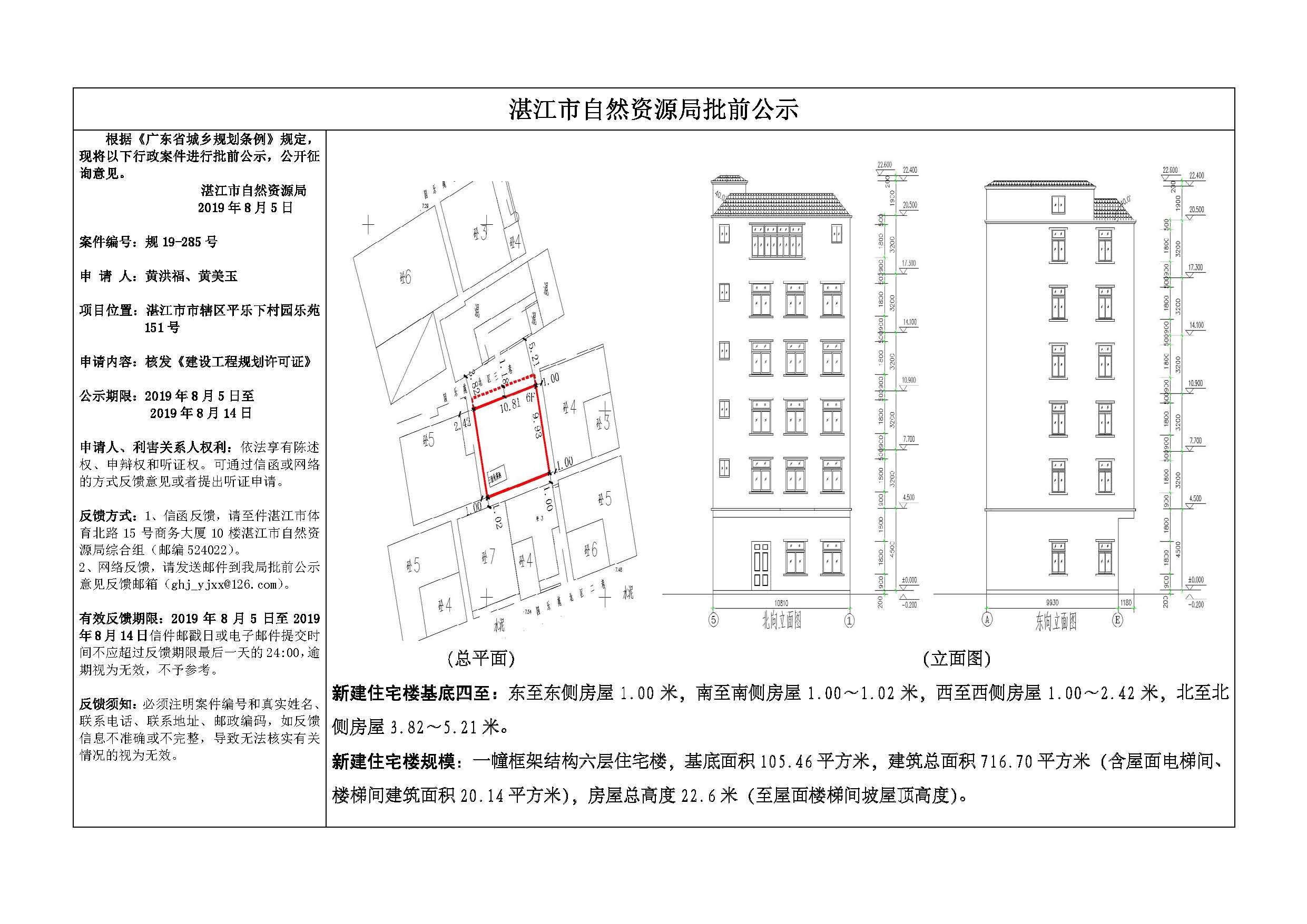 (黄洪福、黄美玉)核发《建设工程规划许可证》批前公示