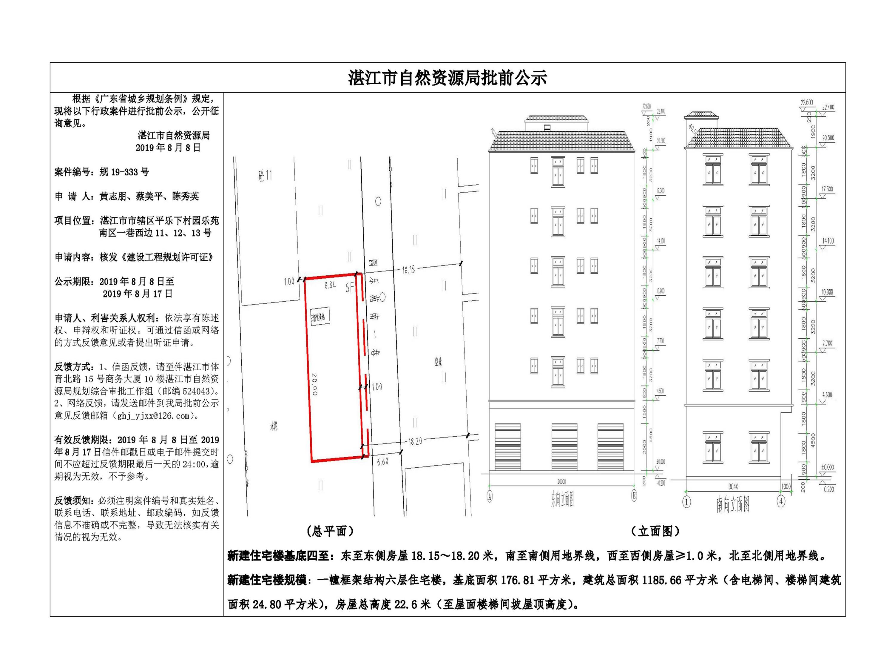 (黄志朋、蔡美平、陈秀英)核发《建设工程规划许可证》批前公示