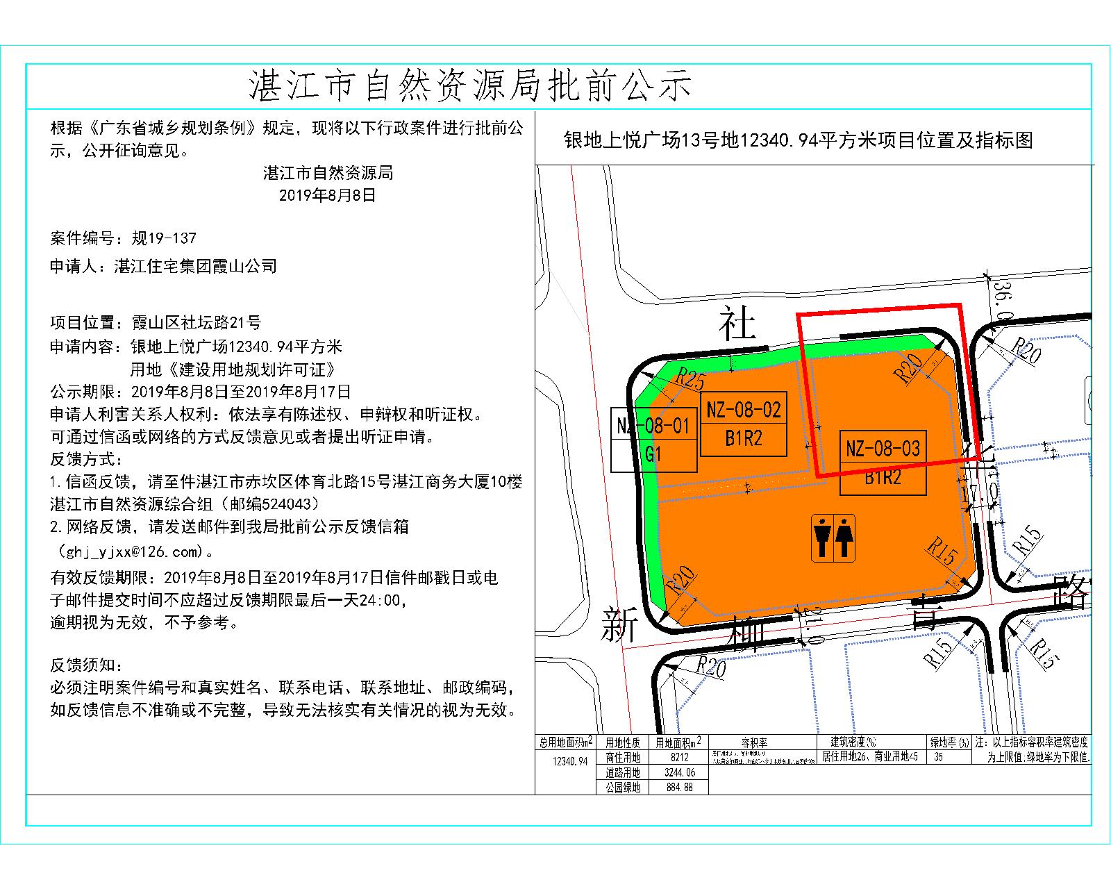 银地上悦广场12340.94平方米用地《建设用地规划许可证》批前公示
