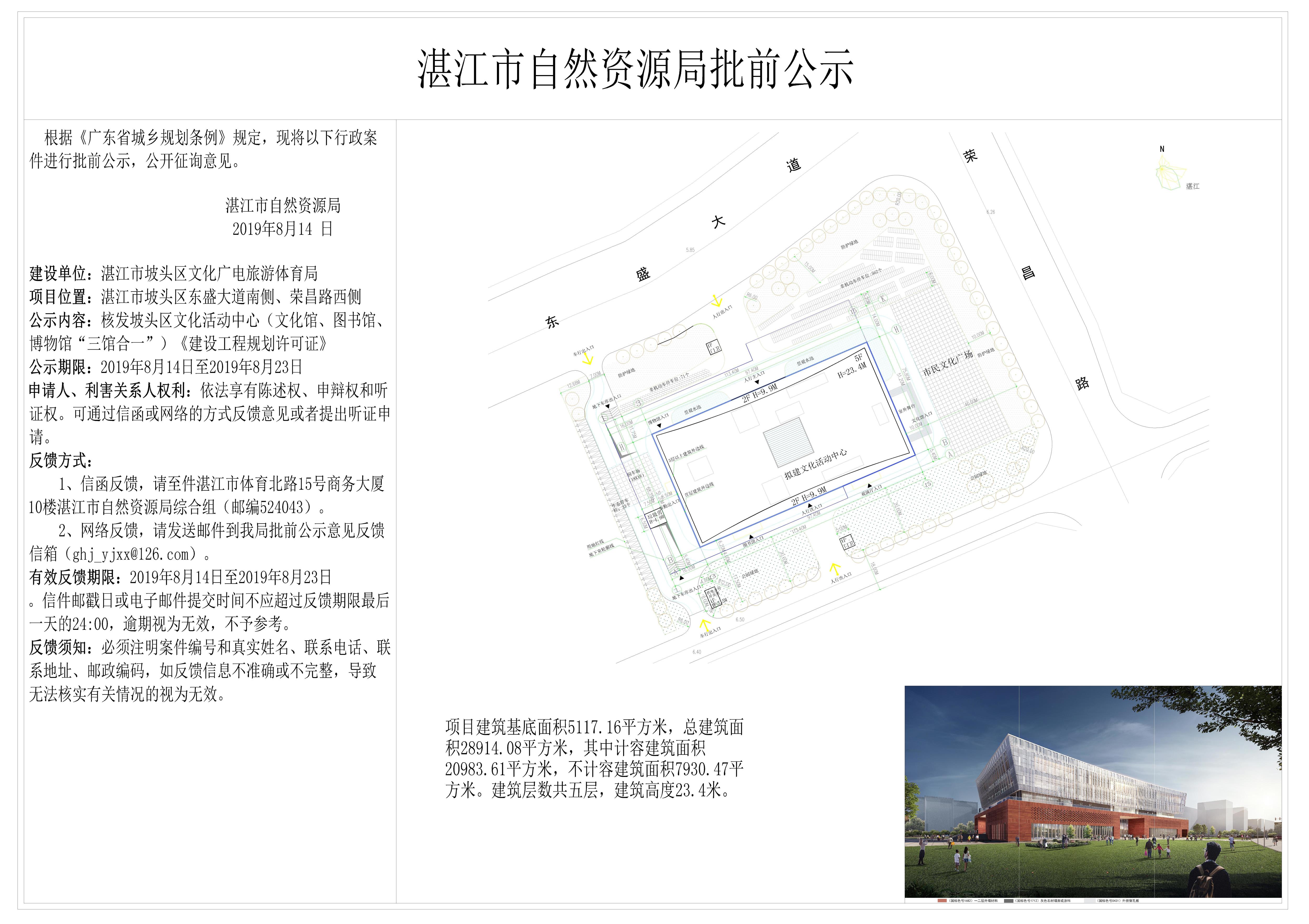 核发坡头区文化活动中心(文化馆、图书馆、博物馆“三馆合一”)《建设工程规划许可证》批前公示