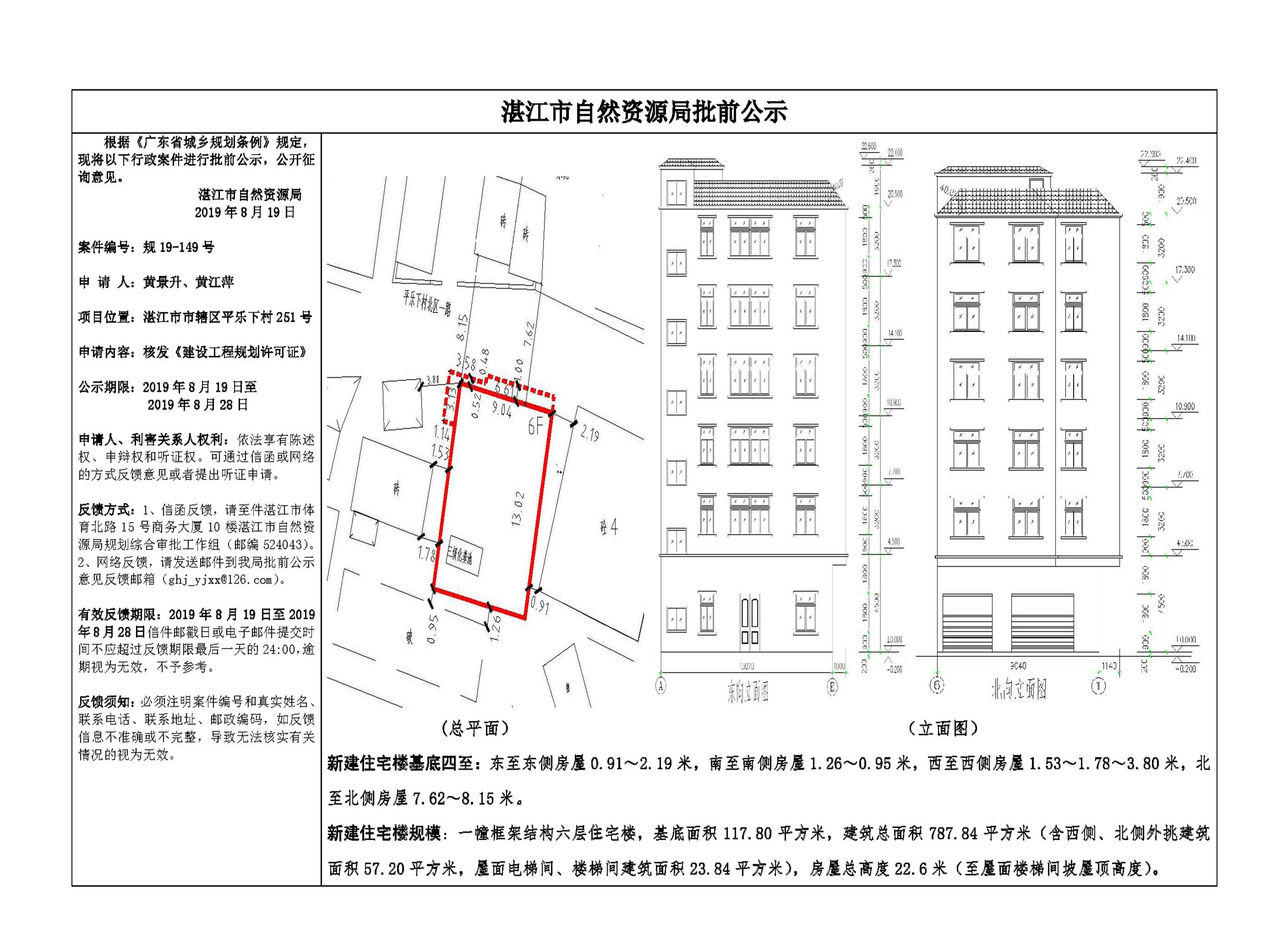 (黄景升、黄江萍)核发《建设工程规划许可证》批前公示