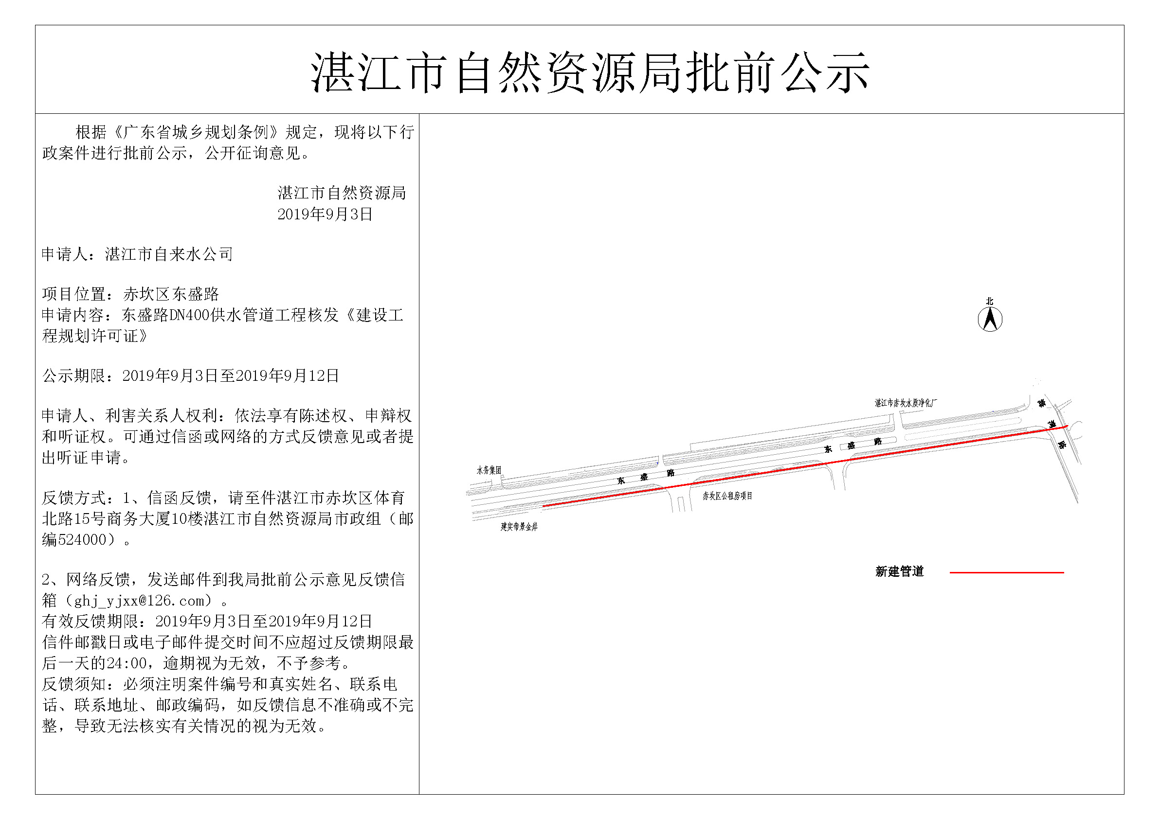 东盛路DN400供水管道工程核发《建设工程规划许可证》批前公示