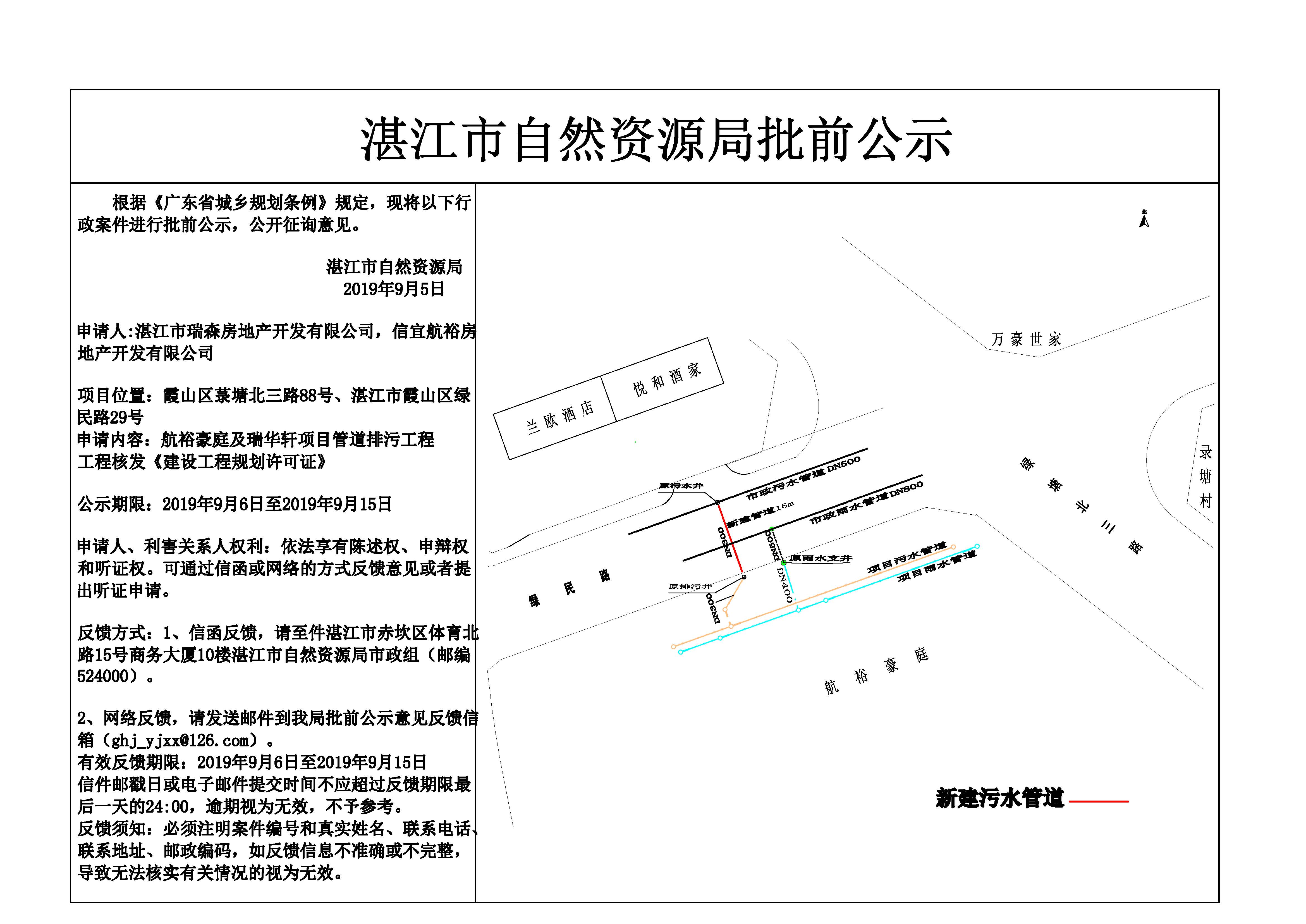 航裕豪庭及瑞华轩项目管理排污工程工程核发《建设工程规划许可证》批前公示