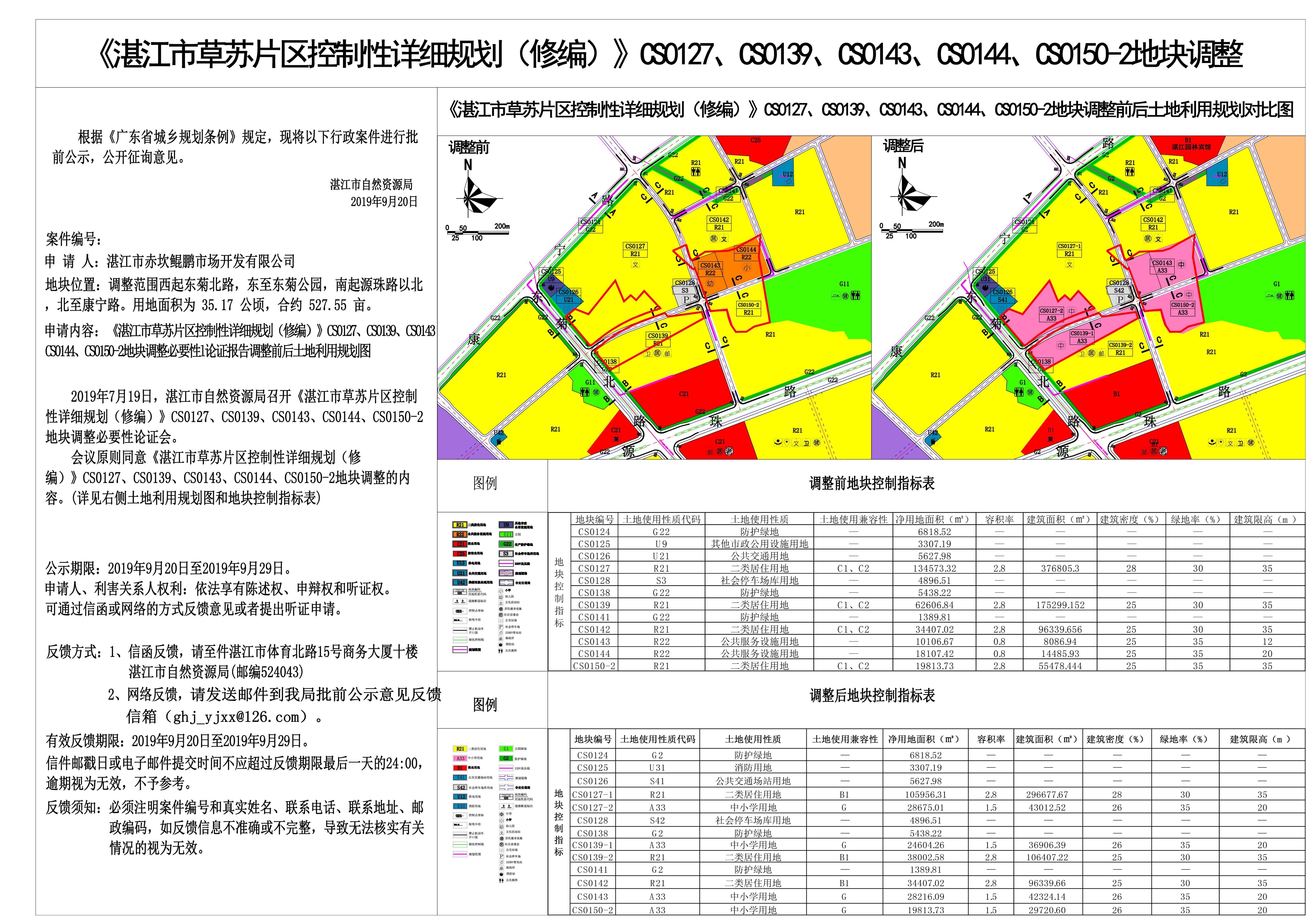 《双赢彩票(中国)开奖记录官网 草苏片区控制性详细规划(修编)》CS0127、CS0139、CS0143、CS0144、CS0150-2地块调整批前公示