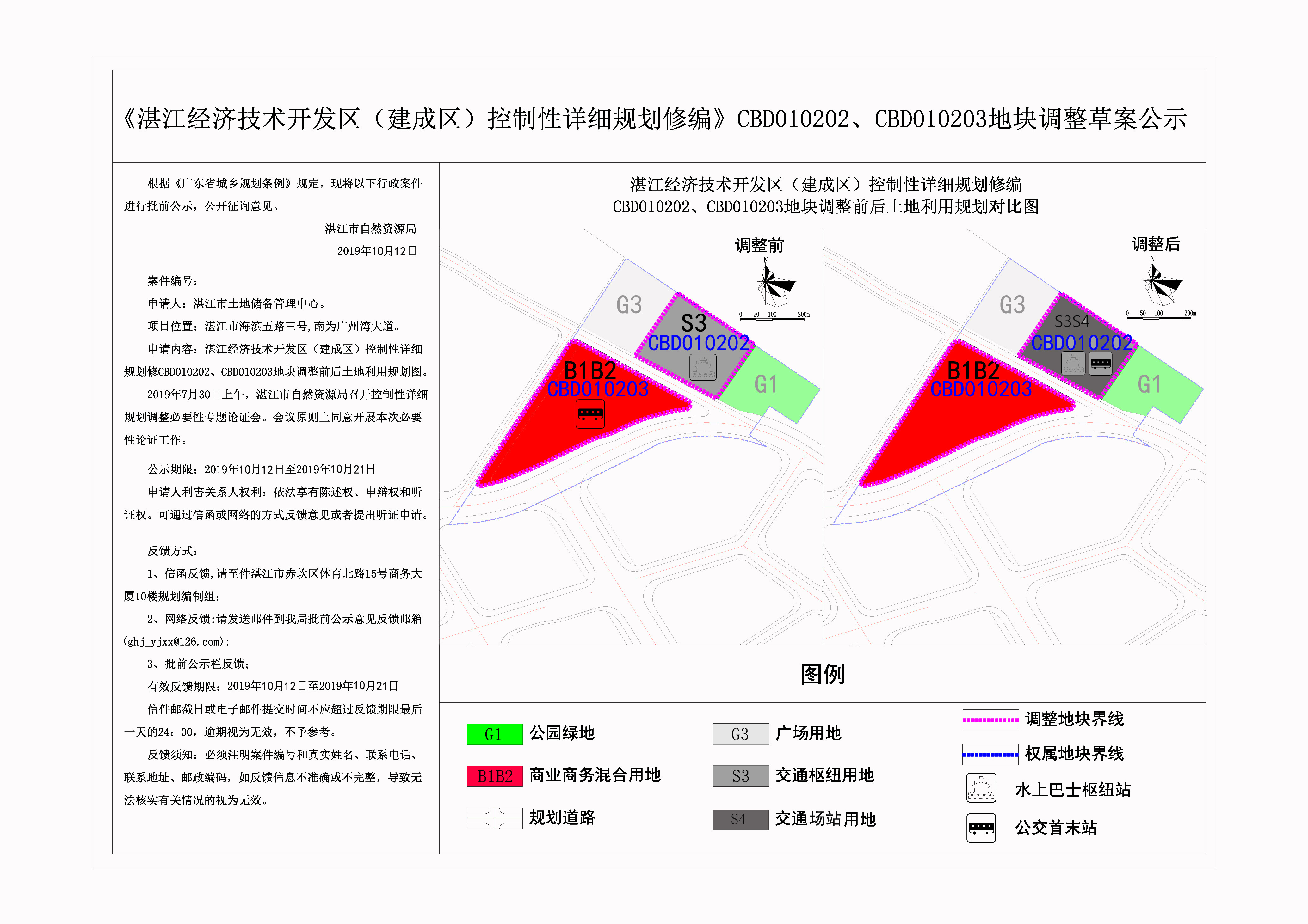 双赢彩票经济技术开发区(建成区)控制性详细规划修CBD010202、CBD010203地块调整前后土地利用规划图批前公示