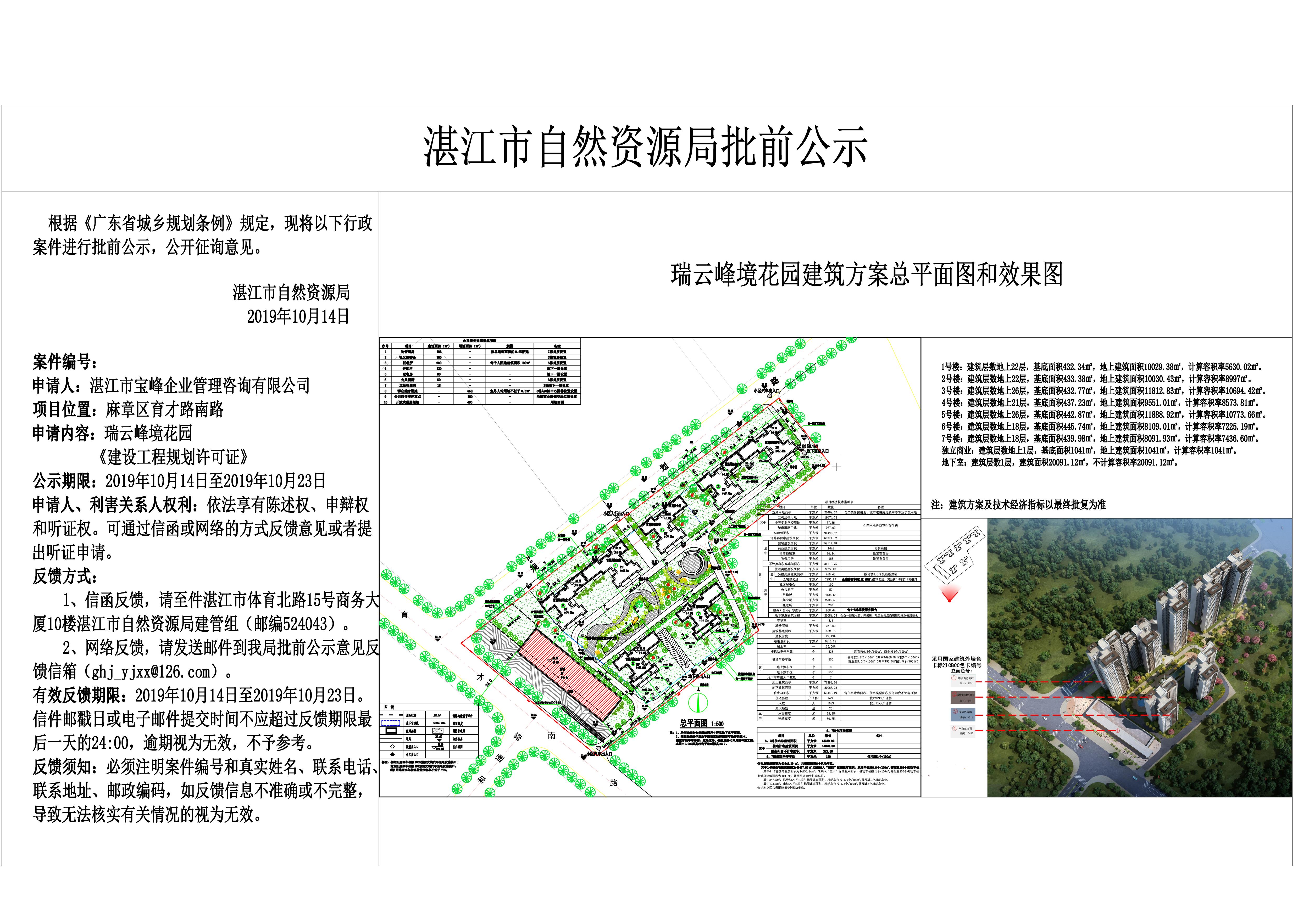 瑞云峰境花园《建设工程规划许可证》批前公示