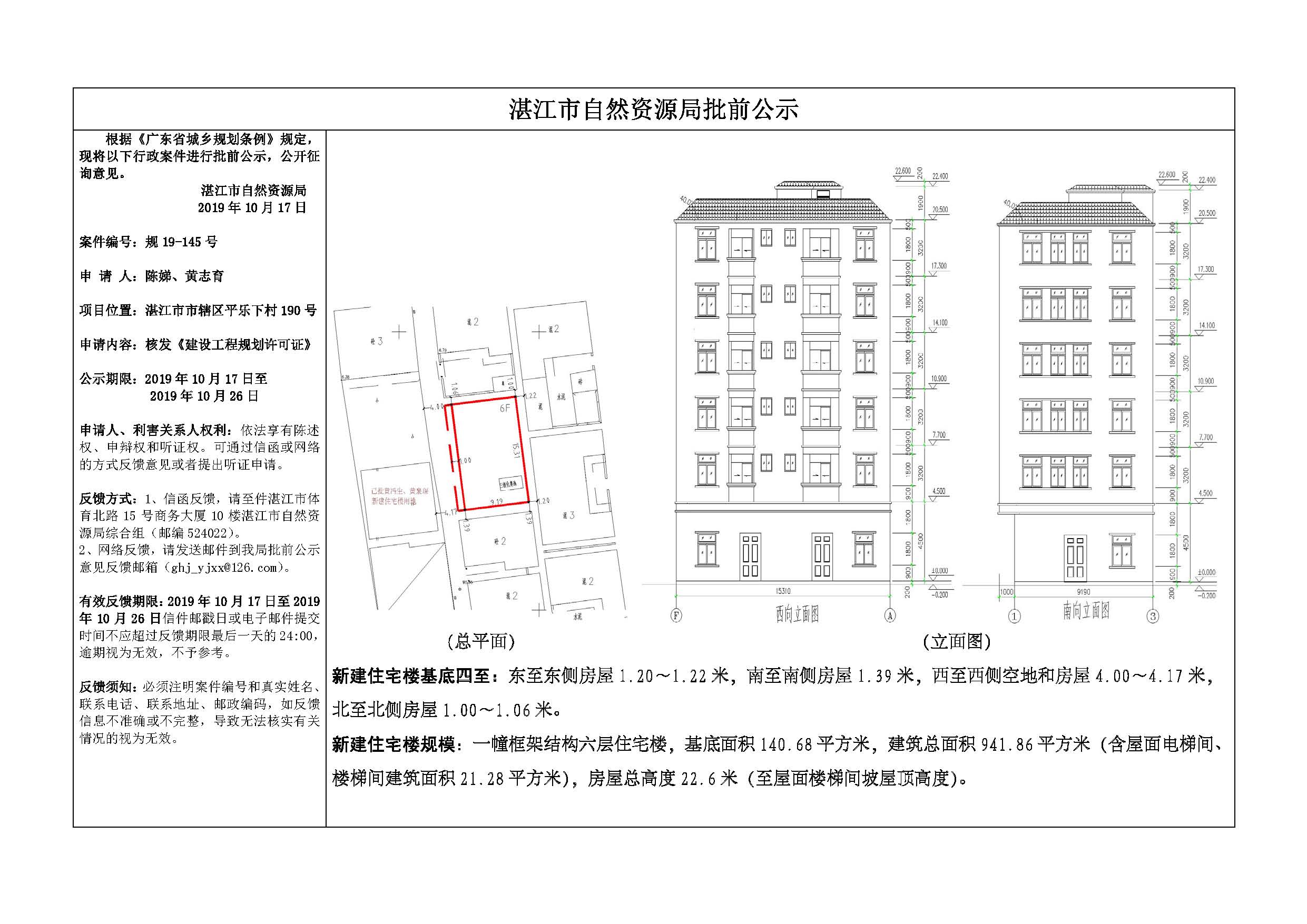 (陈娣、黄志育)核发《建设工程规划许可证》批前公示
