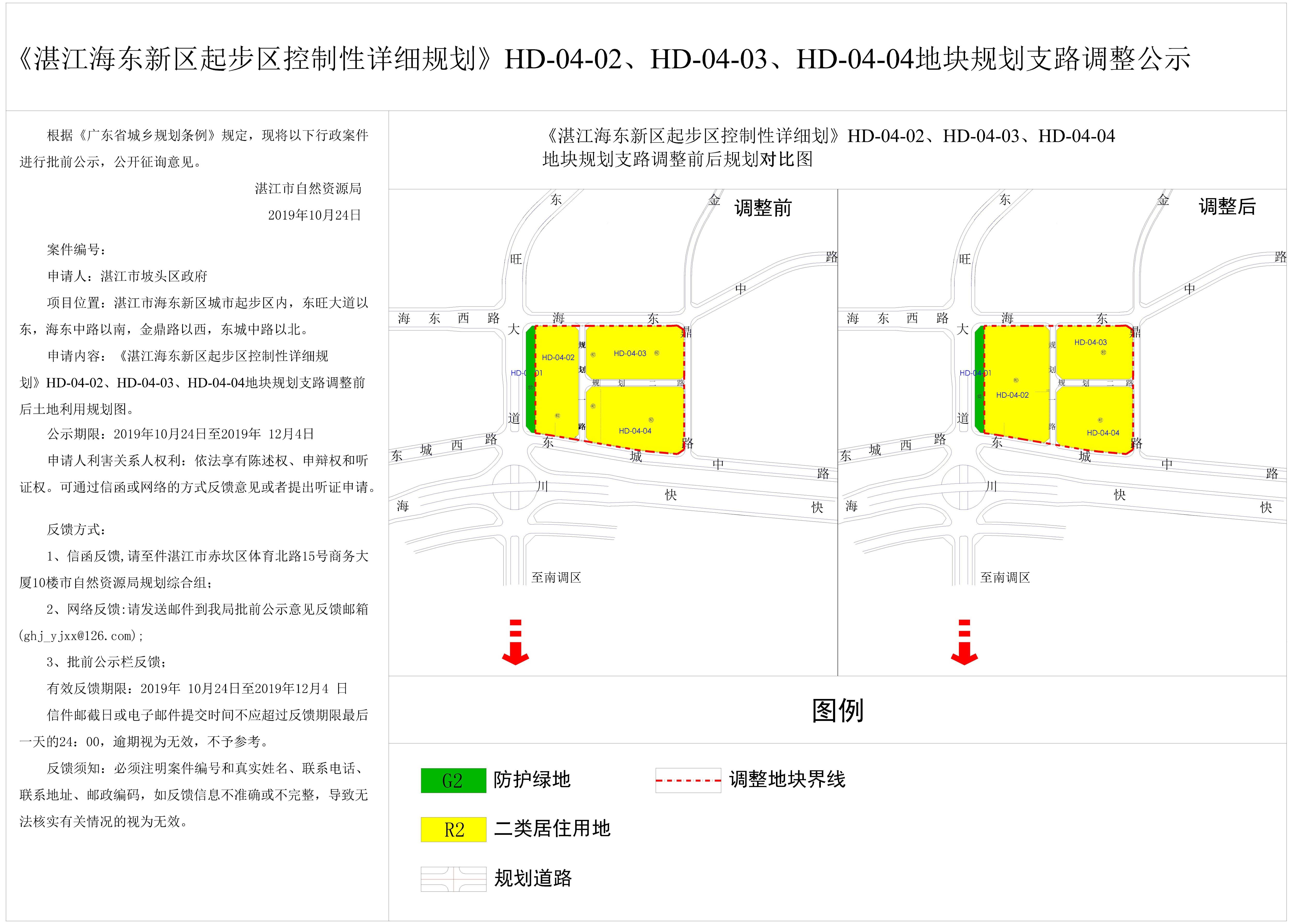 《双赢彩票海东新区起步区控制性详细规划》HD-04-02、HD-04-03、HD-04-04地块规划支路调整前后土地利用规划图批前公示