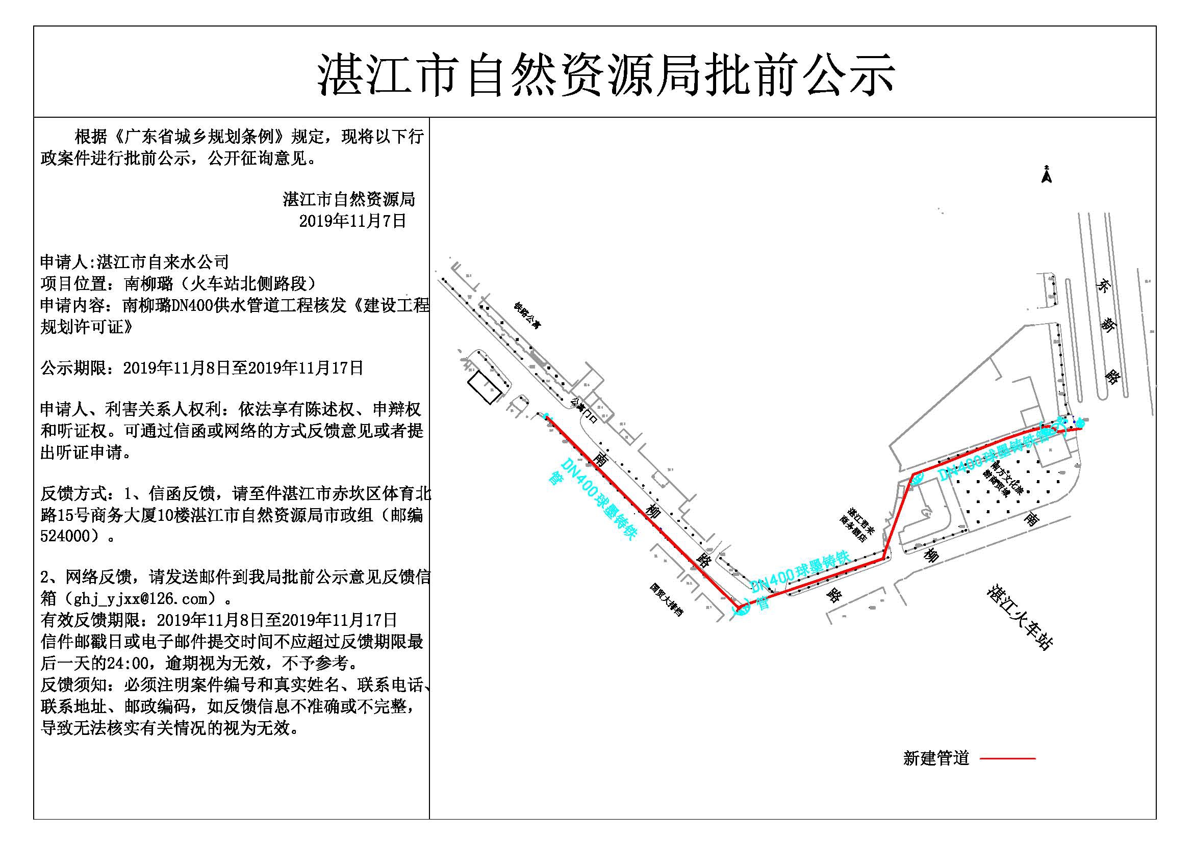 南柳璐DN400供水管道工程核发《建设工程规划许可证》批前公示