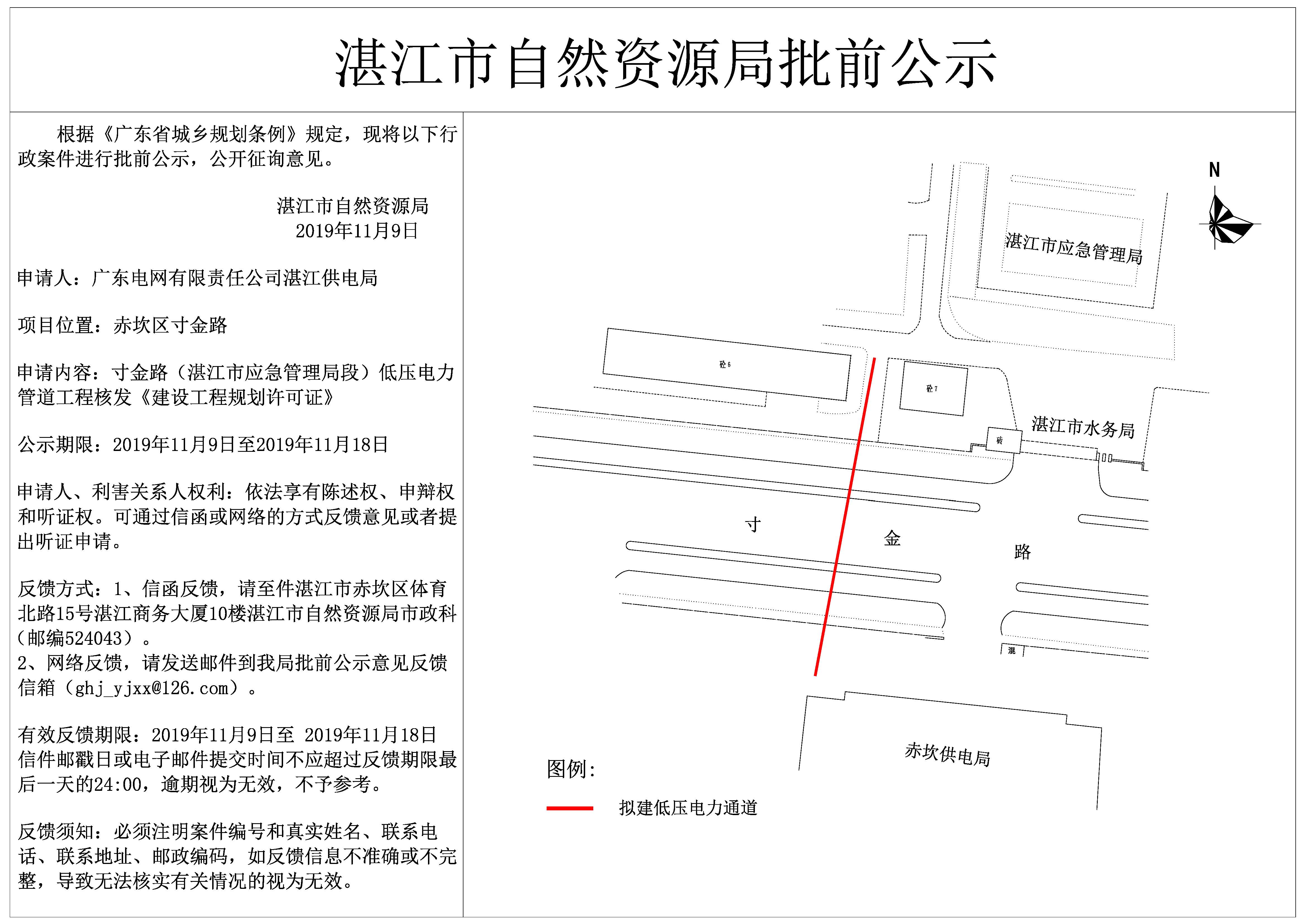 寸金路(双赢彩票(中国)开奖记录官网 应急管理局段)低压电力管道工程核发《建设工程规划许可证》批前公示