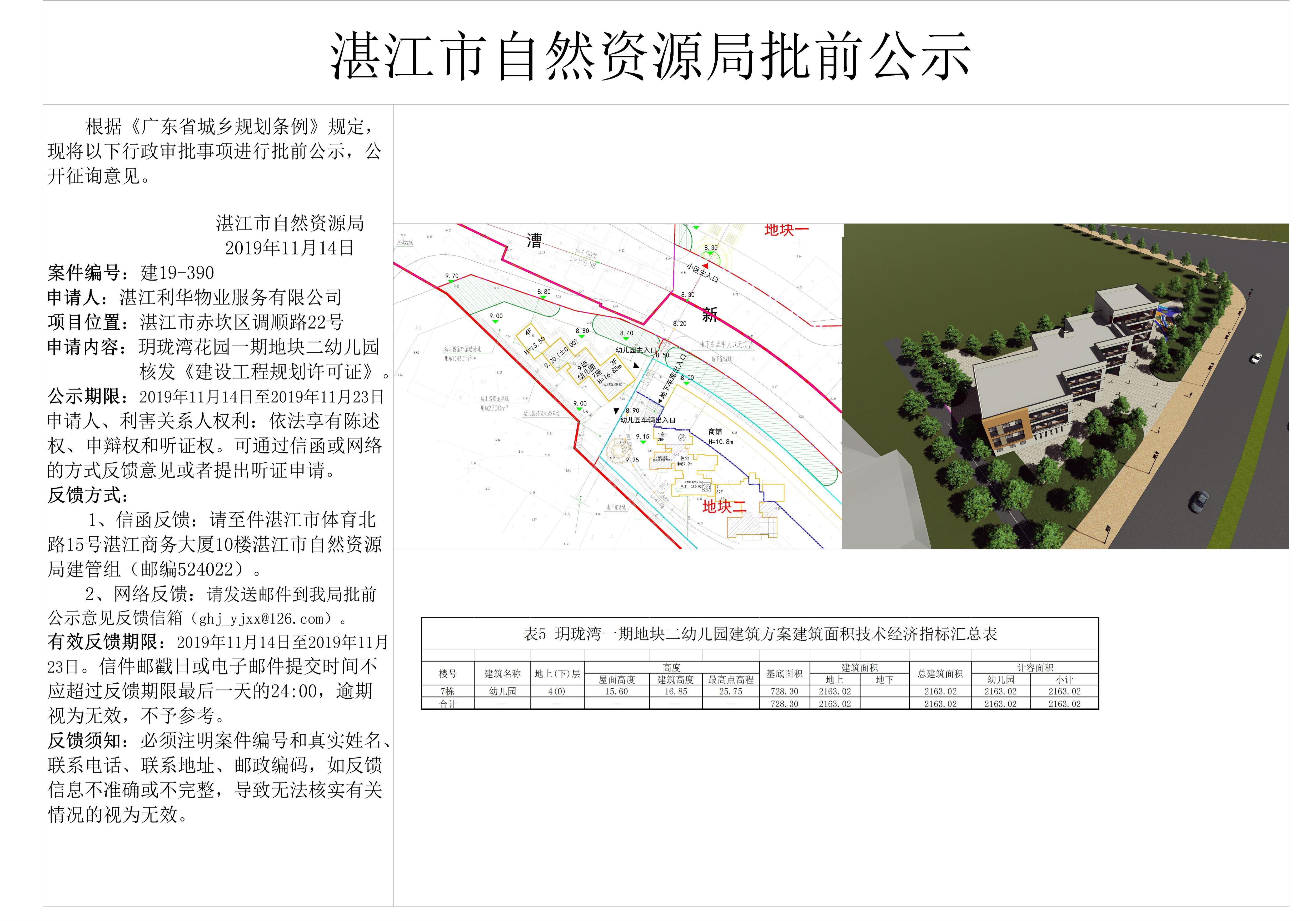 玥珑湾花园一期地块二幼儿园核发《建设工程规划许可证》批前公示