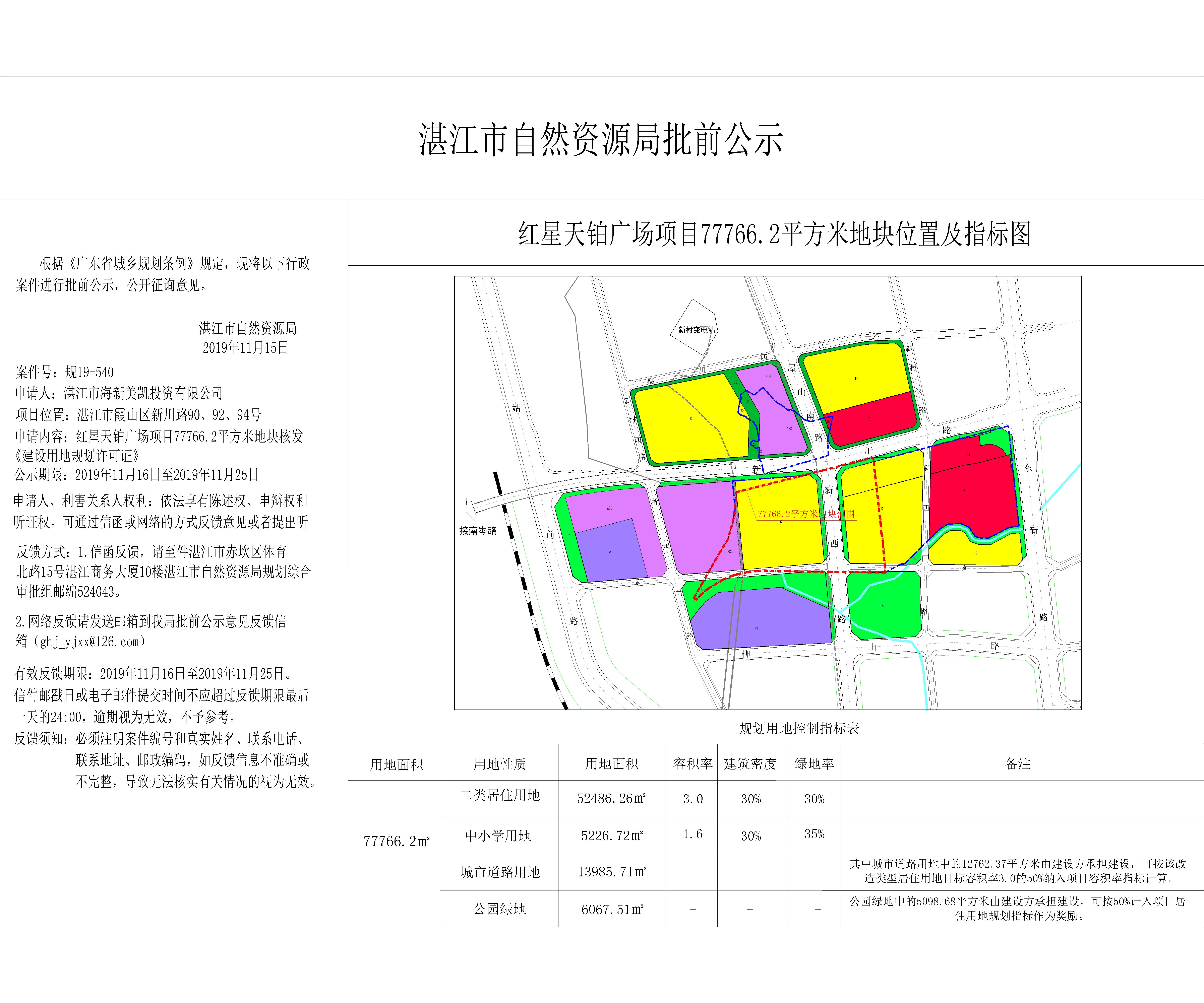 红星天铂广场项目77766.2平方米地块核发《建设用地规划许可证》批前公示