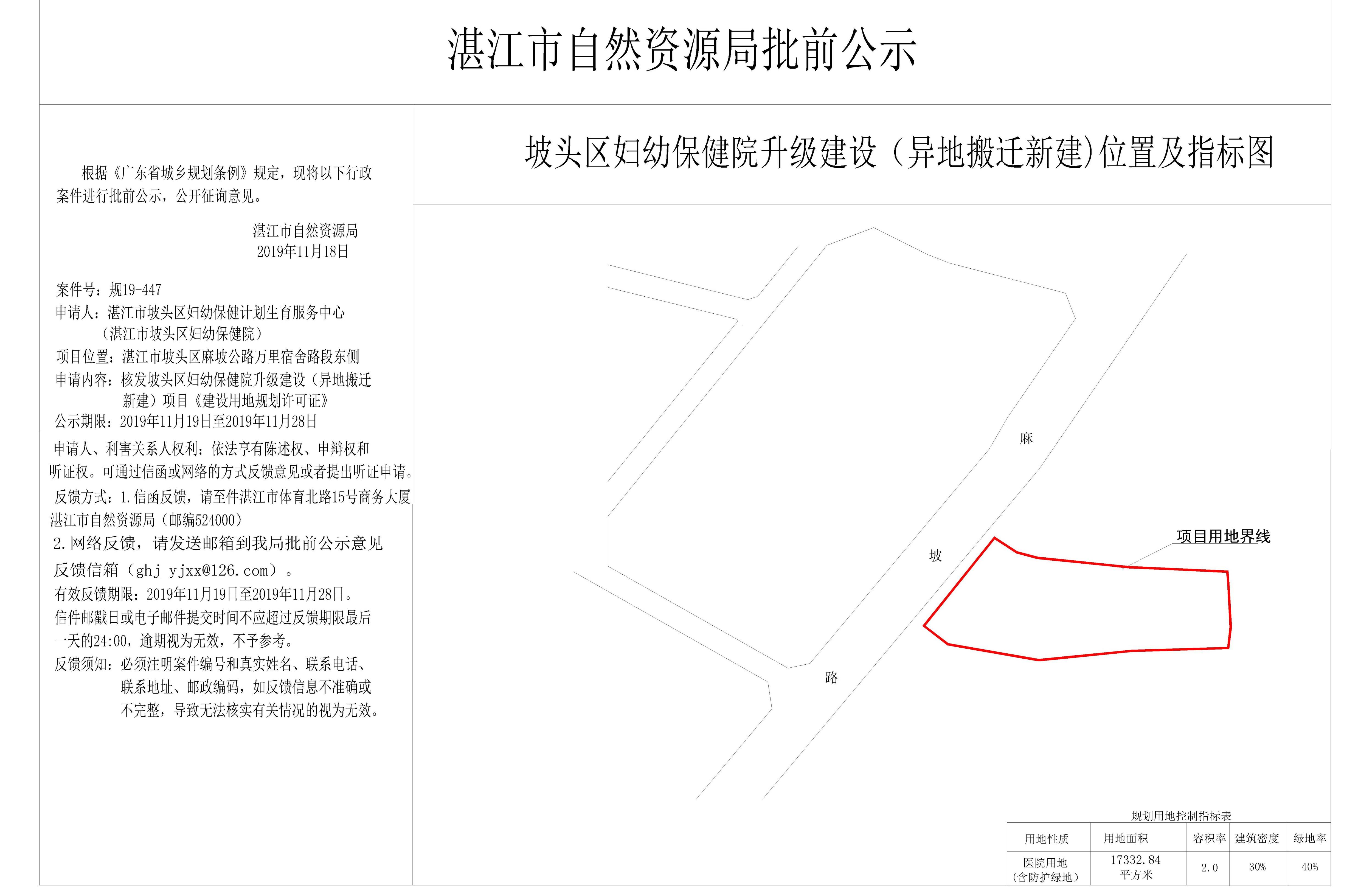 核发坡头区妇幼保健院升级建设(异地搬迁新建)项目《建设用地规划许可证》批前公示