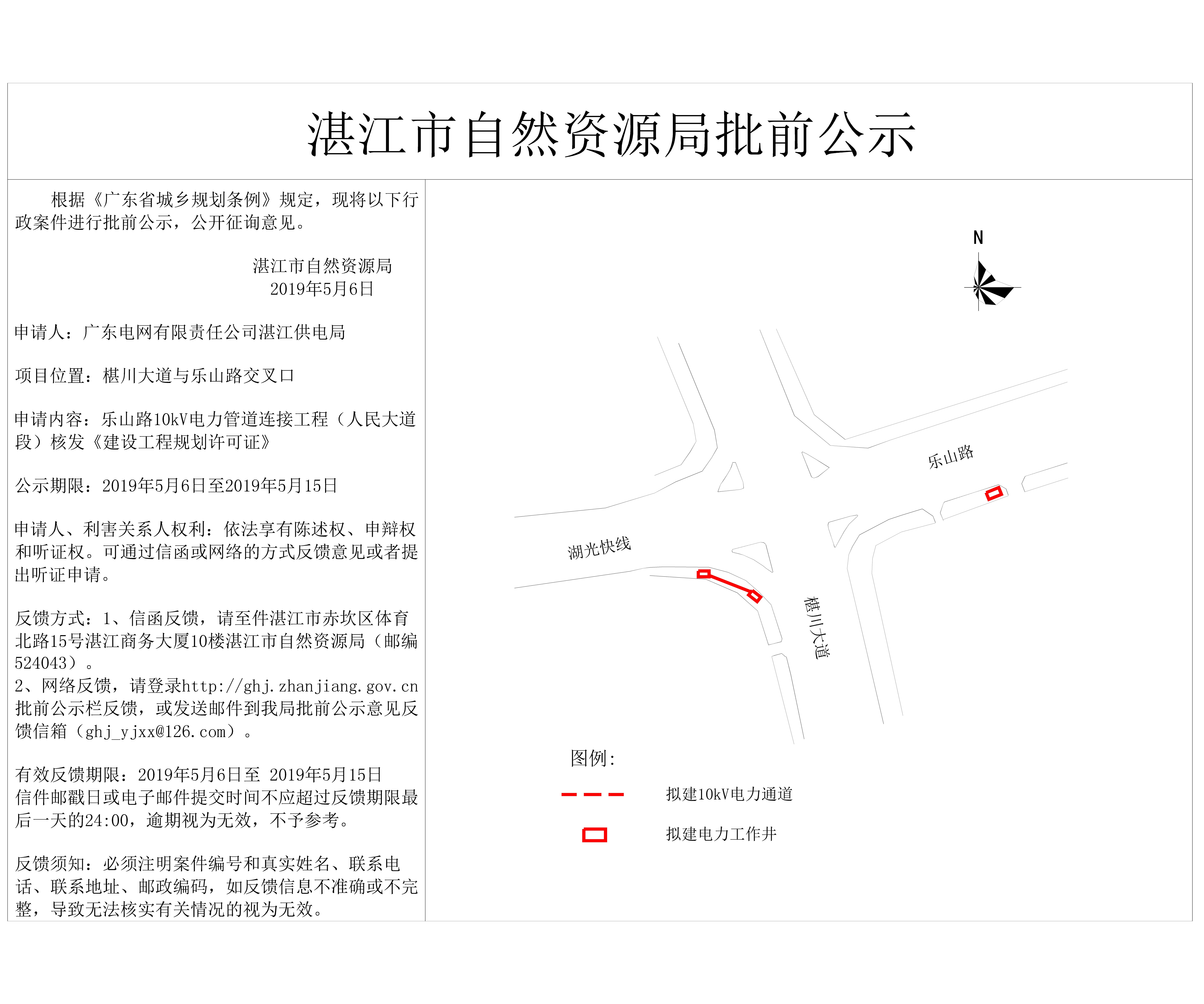 乐山路10kv电力管道连接工程(人民大道段)核发《建设工程规划许可证》批前公示