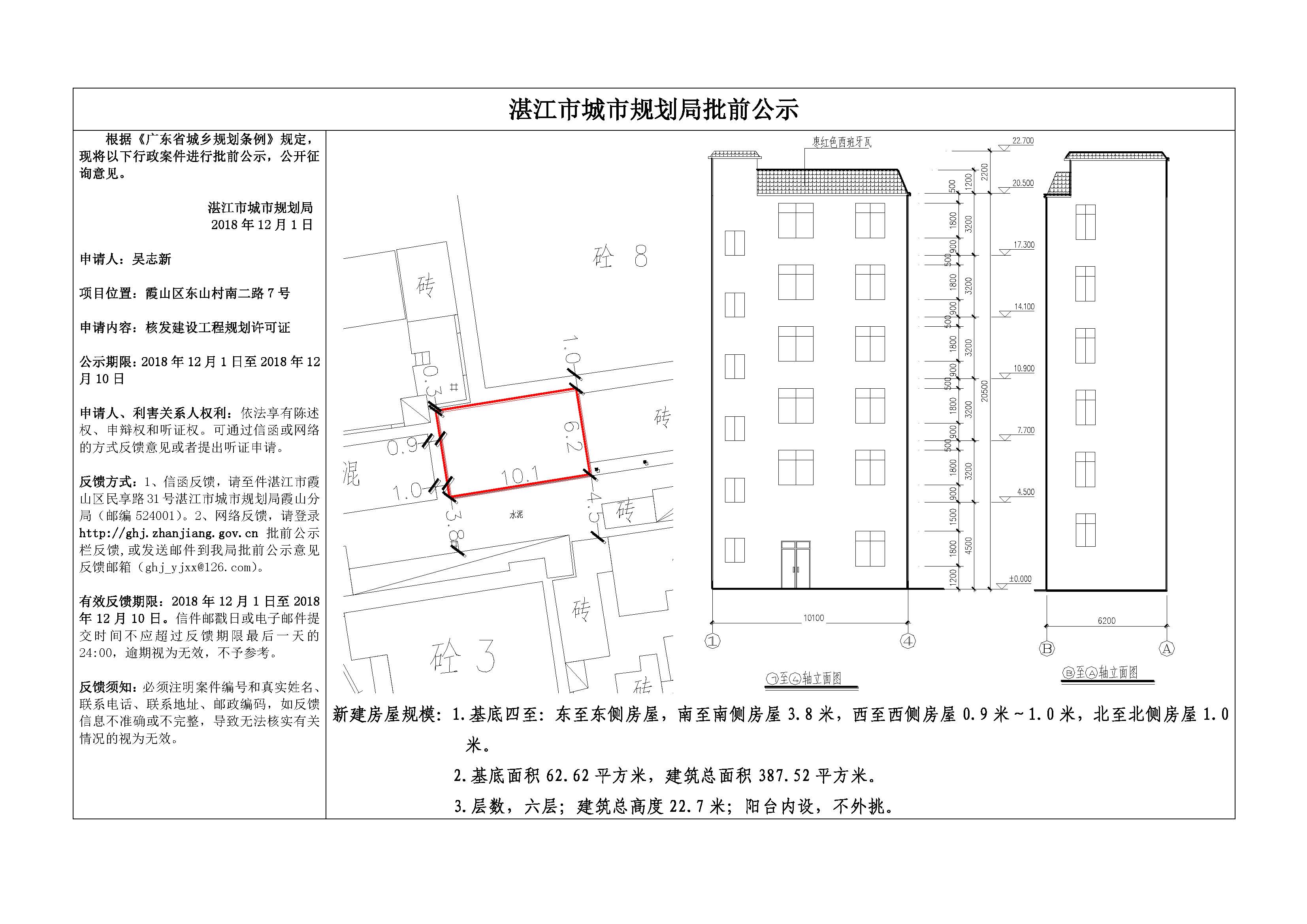 (吴志新)核发建设工程规划许可证批前公示(东山村南二路7号)
