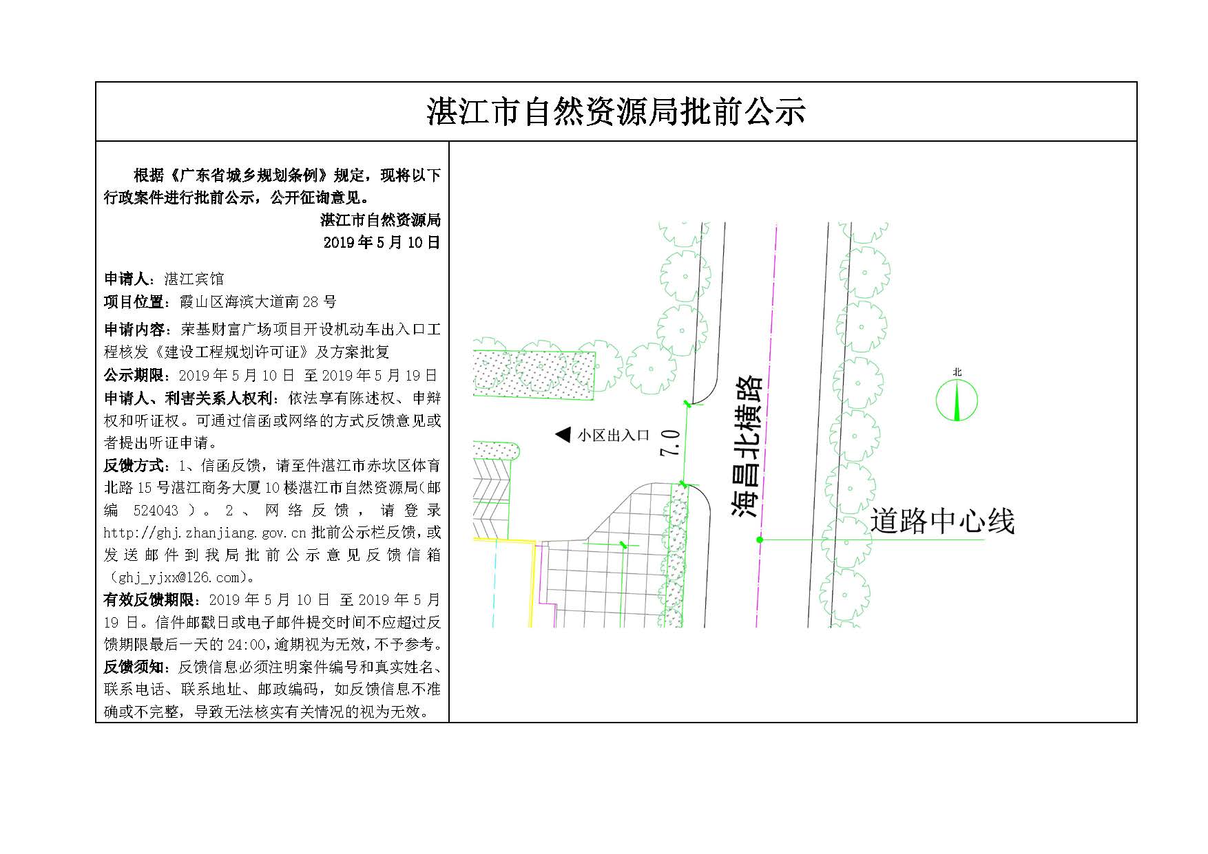 荣基财富广场项目开设机动车出入口工程核发《建设工程规划许可证》及方案批复批前公示