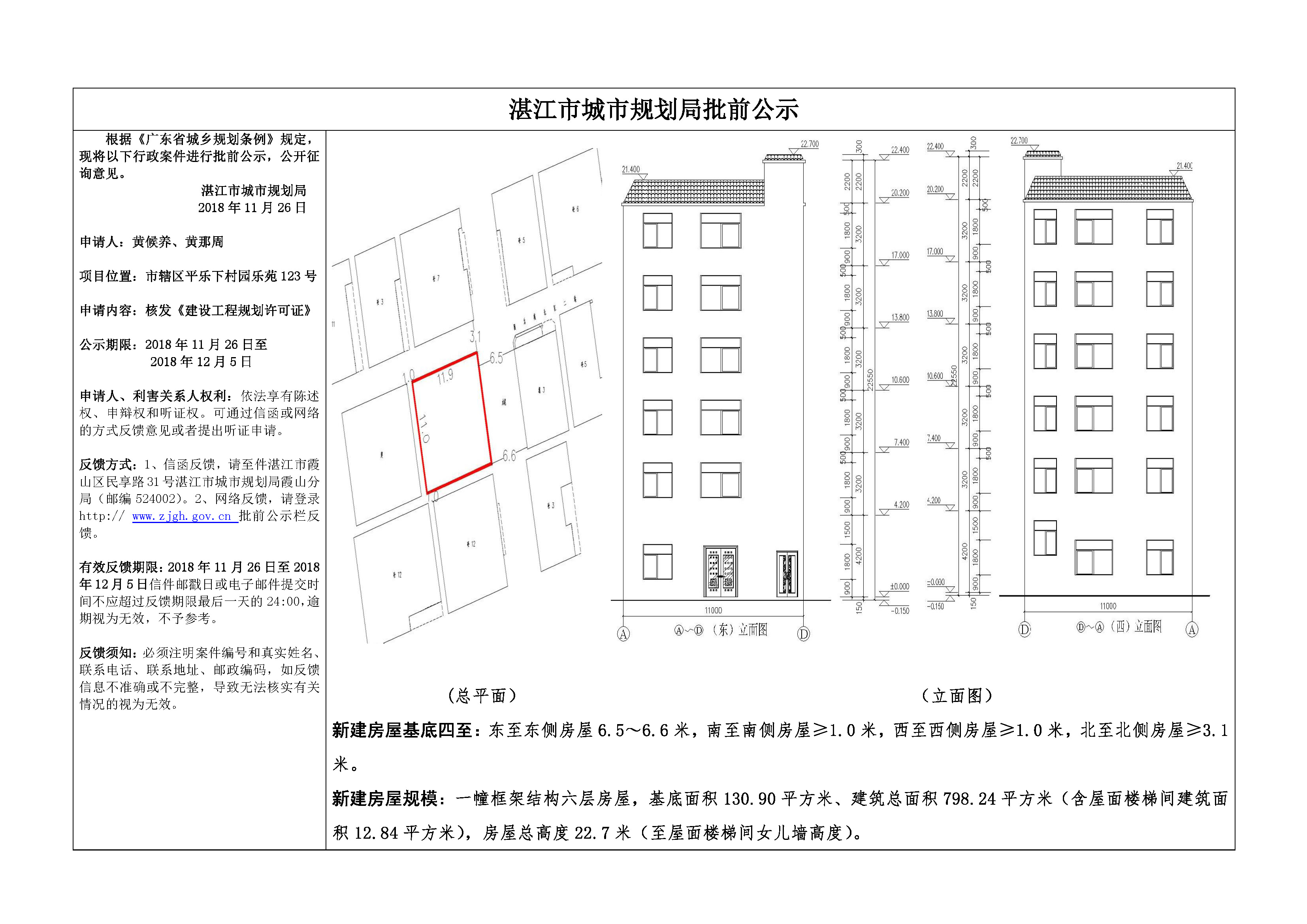 (黄候养、黄那周)核发《建设工程规划许可证》批前公示