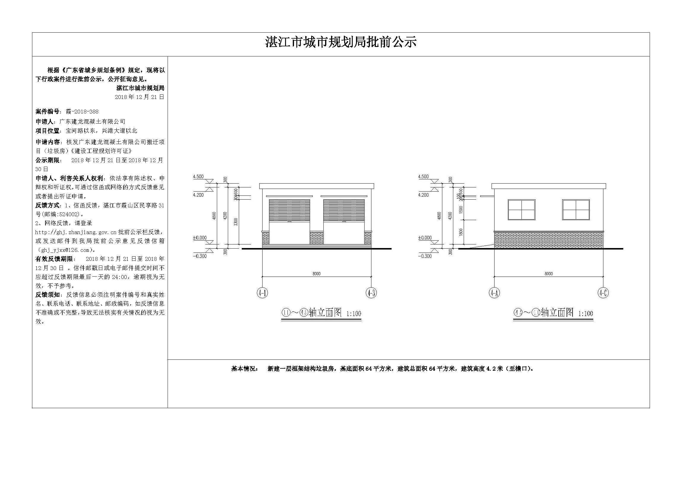 核发广东建龙混凝土有限公司搬迁项目(垃圾房)《建设工程规划许可证》批前公示