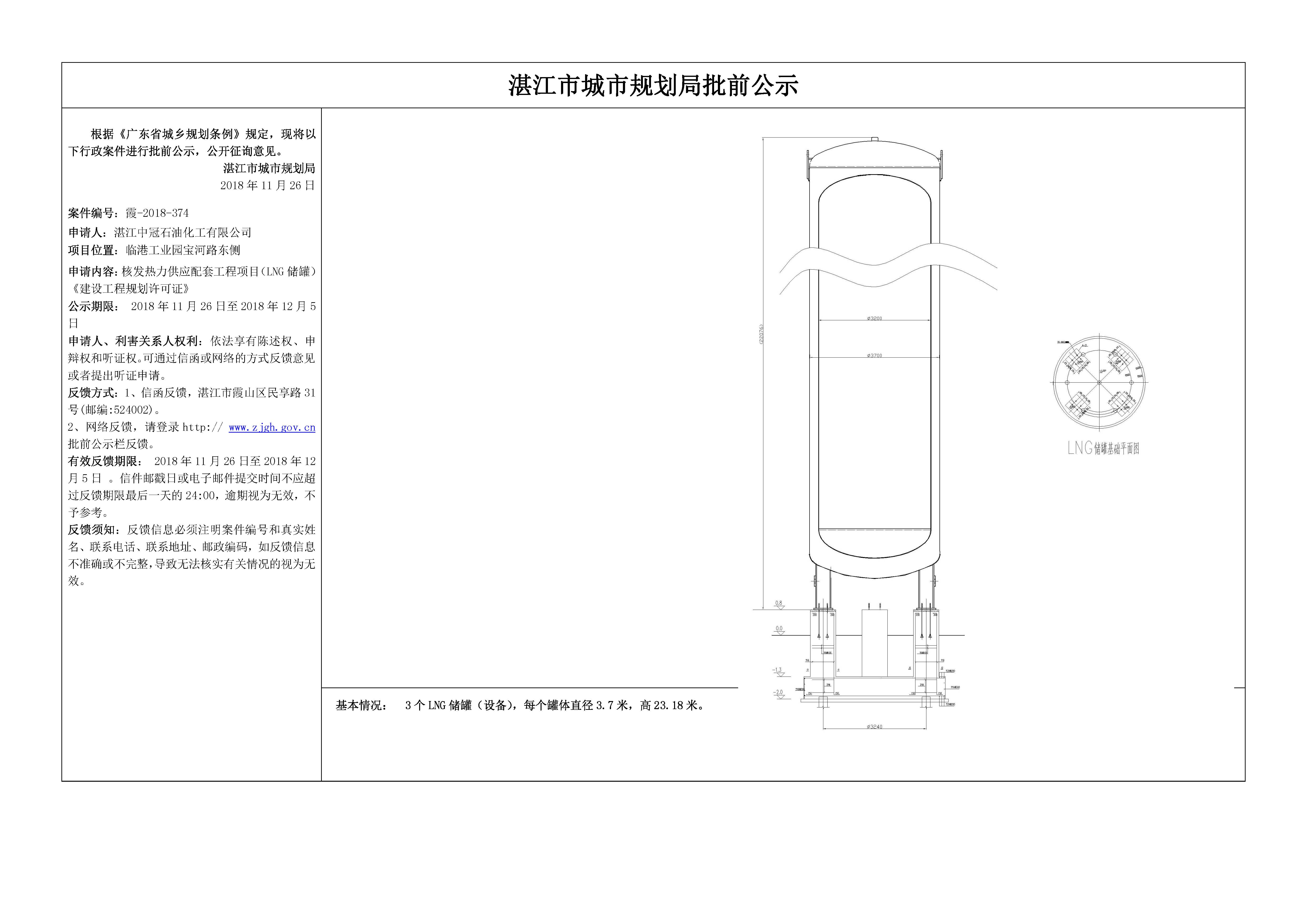 核发热力供应配套工程项目(LNG储罐)《建设工程规划许可证》批前公示